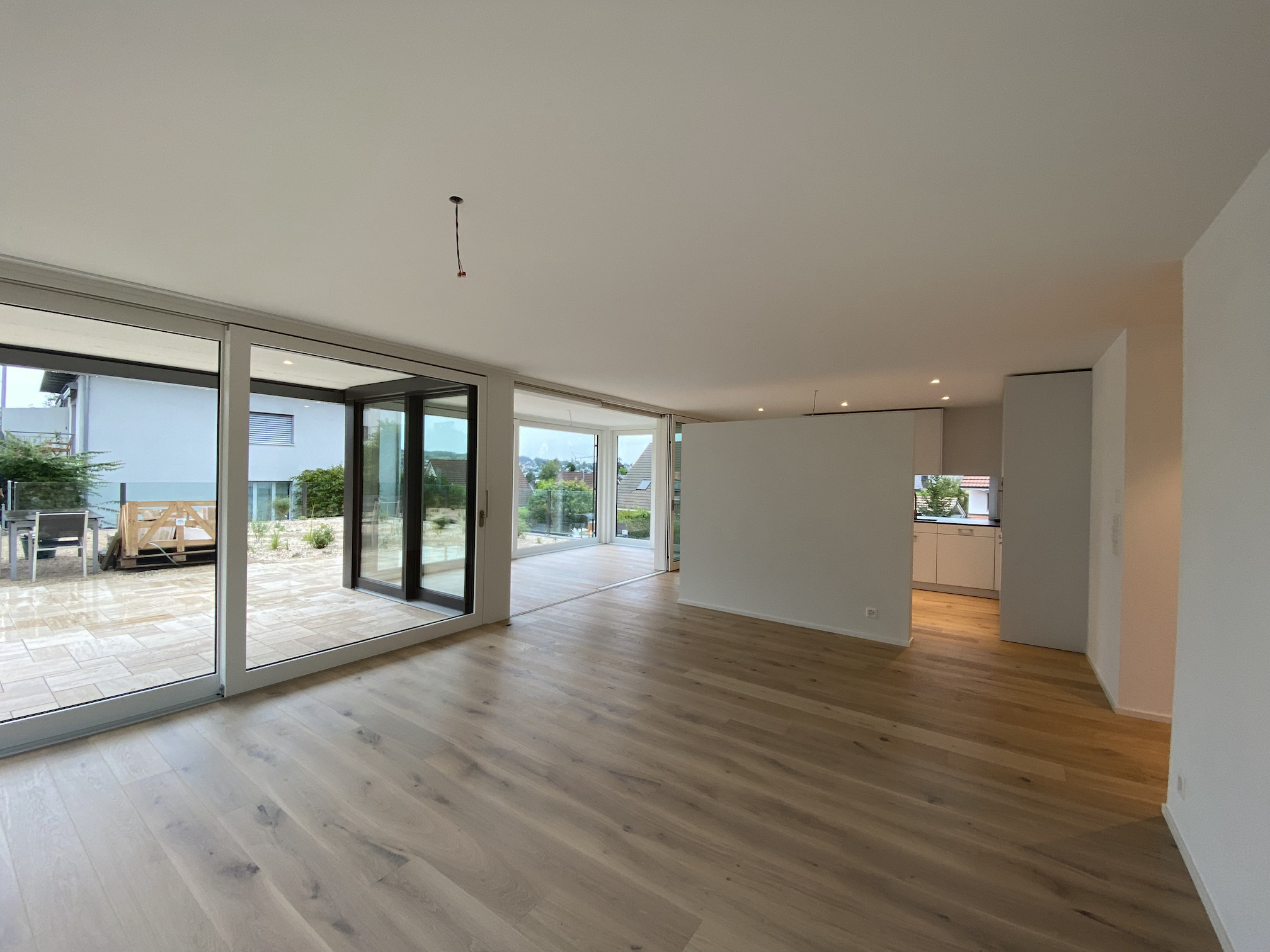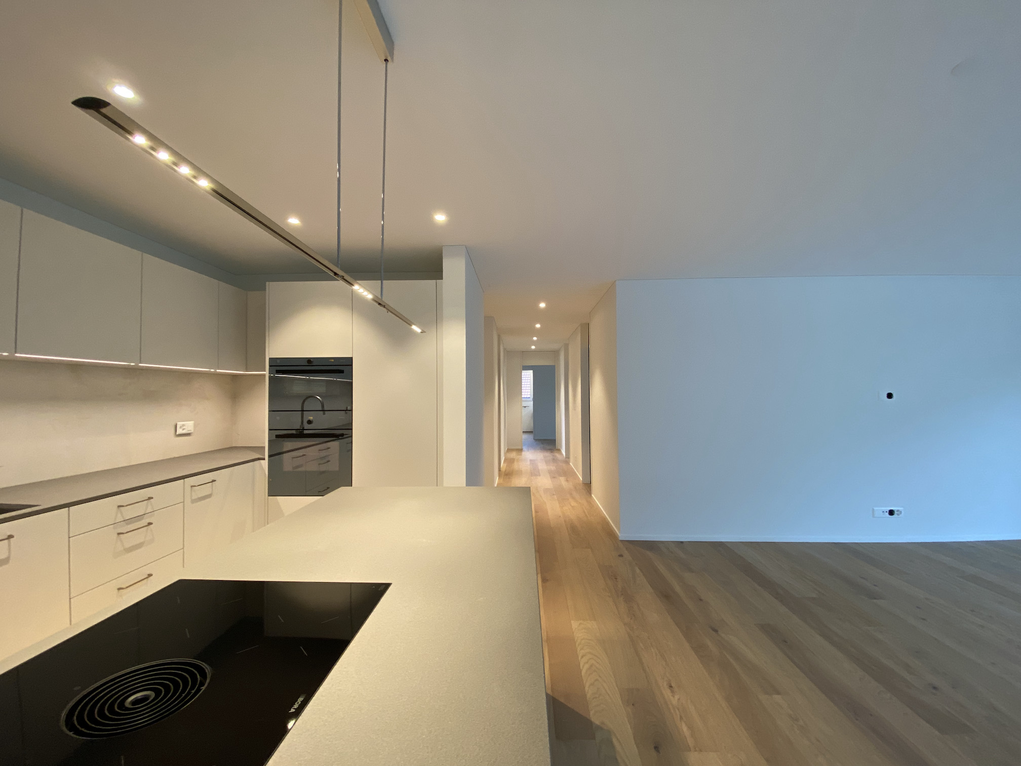 Bei der Innenausstattung wurden exklusive und hochwertige Materialien verwendet. Sämtliche Küchengeräte sind von V-Zug, welche sich wiederum hervorragend hinsichtlich Qualität und Design in die hochwertigen Küchen einfügen. Der Plattenboden und der Parkettboden aus massivem Eichenholz sowie der Waschturm von V-Zug lassen keine Käuferwünsche offen. Abgerundet wird dieses hochwertige Neubauprojekt durch die in allen Wohnräumen verlegte Bodenheizung sowie die äusserst effiziente und umweltschonende Energieversorgung mittels Erdsonde, welche den neuesten Standards des heutigen privaten Wohnungsbaus entsprechen.